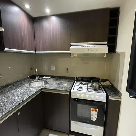 Cozinha totalmente equipada está disponível neste apartamento de 1 quartos de Departamento En Alquiler Temporal Ubicado En Villa Carlos Paz. O apartamento dispõe de 1 casas de banho.